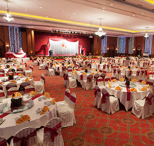 Our stunning ballroom is a sight to behold. With no pillars and an exceptionally high ceiling, it can seat up to 900 guests for round table dining. Great for weddings, annual dinners and conventions.